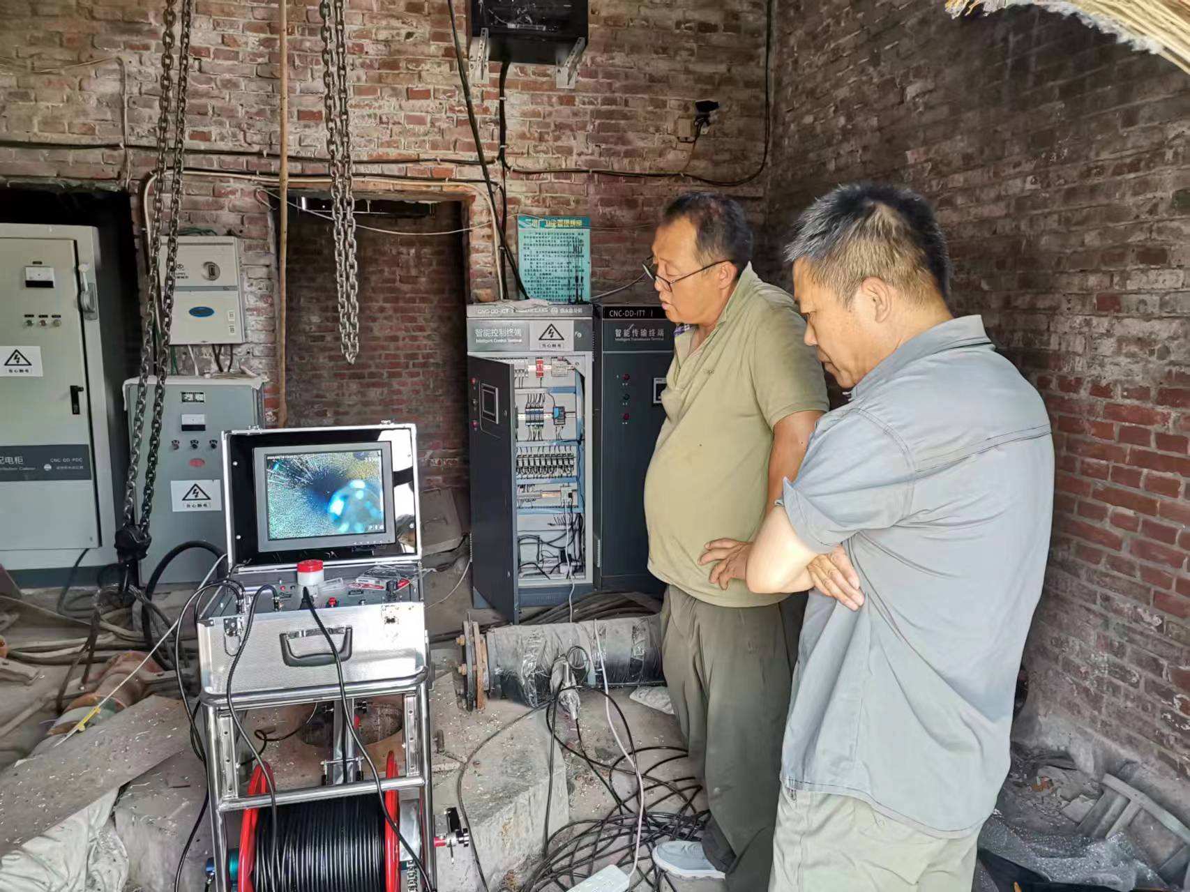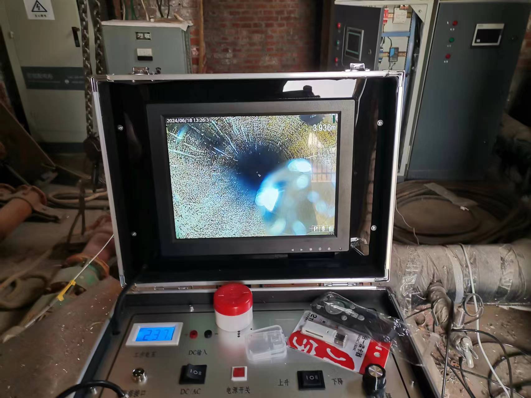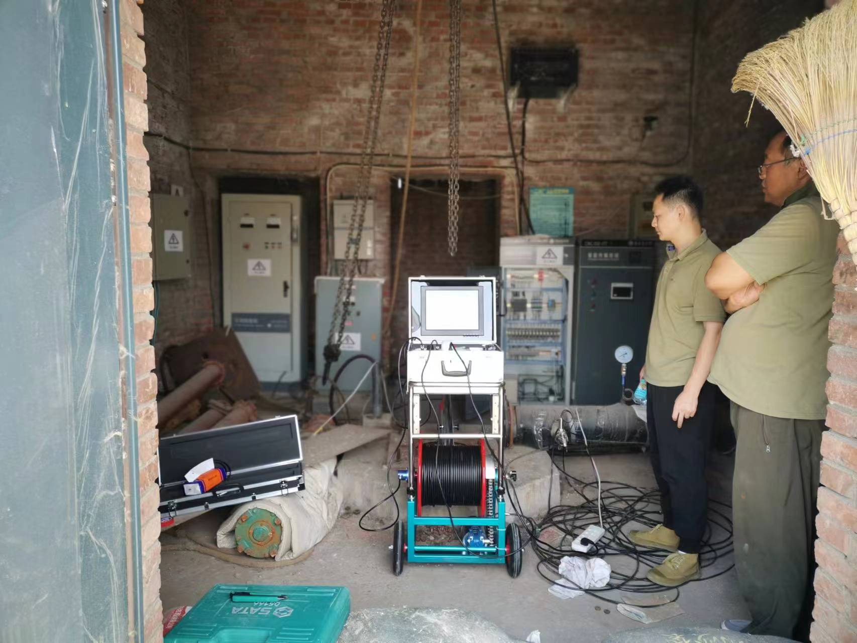 保定供水公司在3月7日打來電話,表示需要采購一臺井下電視成像儀。主要用于50多口水源井的監(jiān)測以及維修。期間客戶提到采購過兩臺井下電視,其中一臺是10年前老式的,使用的錄像帶存儲,不方便也不清楚。另一臺是前兩年購進,測井時圖像不清楚,而且探頭旋轉(zhuǎn)時特快,讓人看著眼花。所以這次決定下大力氣采購臺圖像清楚且皮實耐用的井下電視成像儀。